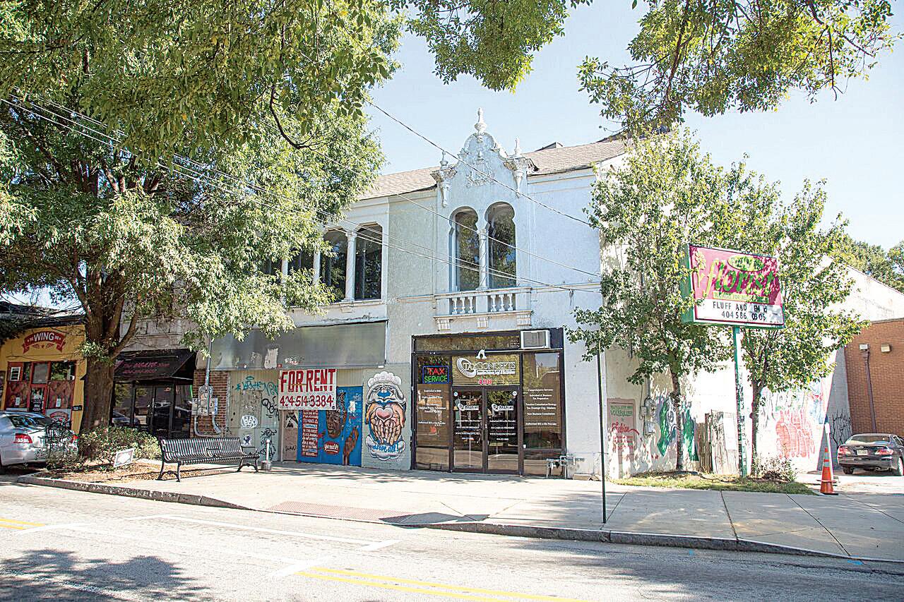 and west sides of Rhodes Hall and were faced with white Georgia marble. Only the South building, which was home to the Rhodes Theatre, remains. The building is threatened by its current state of disrepair after sitting vacant and suffering neglect for many years.