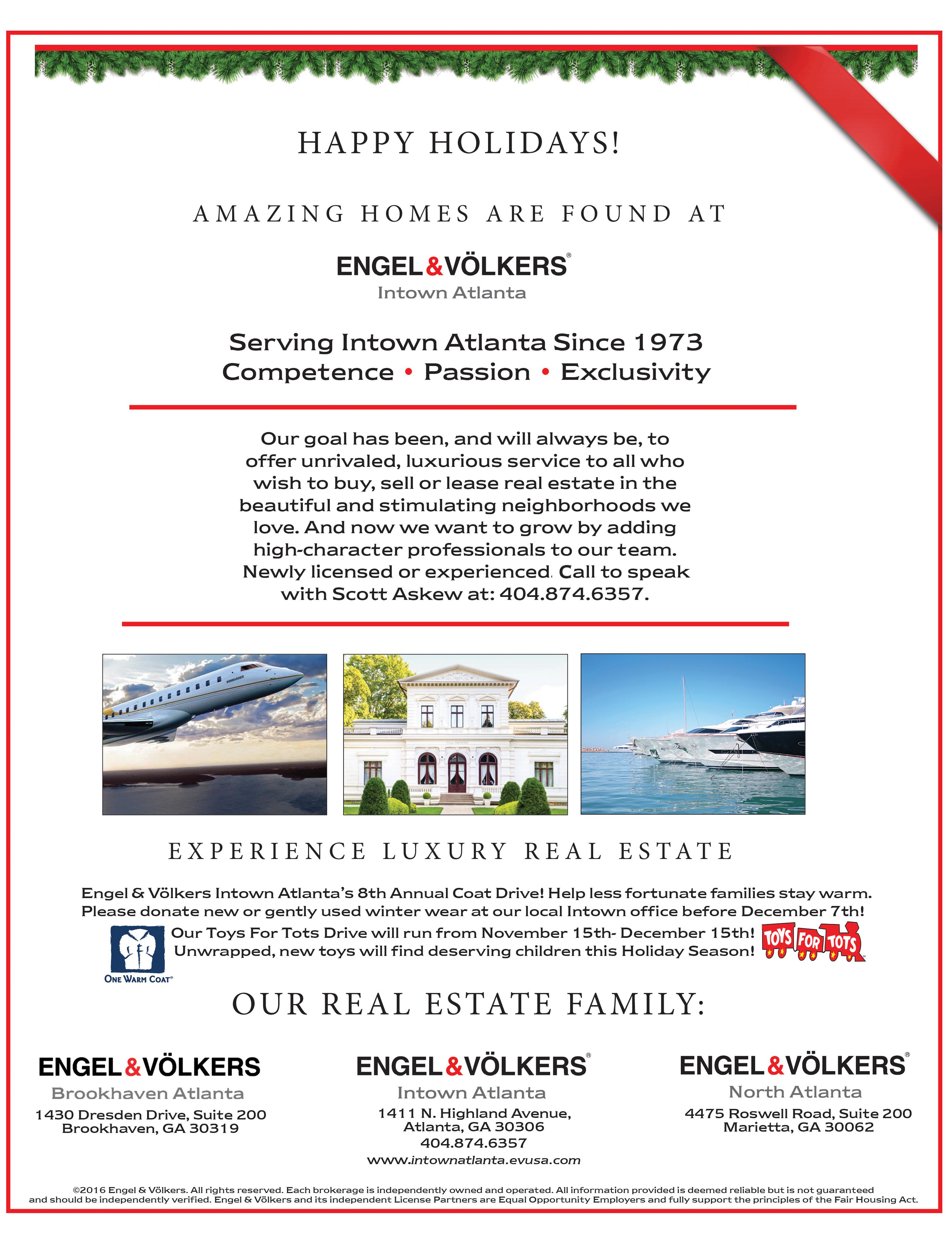 2 December 2018 | AtlantaINtownPaper.com ©2015 Engel & Völkers. Each brokerage independently owned & operated. All information provided is deemed reliable but is not guaranteed. Engel & Völkers and its independent License Partners are Equal Opportunity Employers & fully support the principles of the Fair Housing Act. Office 404-874-2751 Direct 404-664-8280 ken.covers@evusa.com kencovers.evusa.com 1411 N. Highland Avenue N.E. Atlanta · GA 30306 YOUR LIFE YOUR HOME YOUR REALTOR® Morningside: 1600 Johnson Road. Classic Tudor Bugalow with 4BR including Oversized Master, Gourmet Kitchen, Glistening Hardwood Floors and a 4-Hole Putting Green. 4BR/3BA $799,000 RESERVED Virginia Highland: 1243 Stillwood Drive.Truly Special Home with Outdoor Oasis Featuring Walk Out, Level Backyard, Heated Pool, Covered Patio with Fireplace. Large Motor Court, NEW, Oversized, 2-Car Garage with Beautifully Finished Man Cave and Full Bath on Second Level. Main Home Features Elegant Entrance Opening to Large Living Room and Separate Dining Room, Sleek Modern Kitchen with Breakfast Area and Adjoining Den/Family Room. Guest Suite on Main; Two Additional Bedrooms & Sassy Master Suite with Covered Loggia on Second Level. 5BR/4.5 BA Morningside : 1598 West Sussex Road. Exceptional Mediterranean Residence with Heated Pool and Spa, Gourmet Kitchen, Striking Master Suite 5BR/5.5BA $1,995,000 Ken Covers • Engel & Völkers Portfolio of Homes Outstanding Intown Residences Price Improvement Price Improvement Morningside: 1028 Amsterdam Avenue. Very Best of Intown. Total Package, Expanded and Renovated Offering Open Floor Plan with Chef’s Kitchen, Screened Porch, Gracious Formal Areas, Deluxe Master with Morning Bar, Private Deck and Luxurious Bath, with Soaking Tub, Finished Basement with Play /Bonus Space, Bath and Possible 6th Bedroom. 3rd Level Bonus/Play Space and 2-Car Garage. 5BR/5BA $1,195,000 Price Improvement Virginia Highland: 969 Todd Road. The Ultimate Va-Hi Location Just ½ Block to Murphy’s. Chef’s Kitchen, Double Porches Private Fenced Backyard. 4BR/3BA $869,000 Price Improvement Morningside: 973 Wildwood Road. Sleek Modern Vibe, Chef’s Kitchen, Luxury Master, Resort-Like Pool 3BR/3.5BA $1,325,000 PrivateResort From My Home to Yours... Happy New Year!!! Call Me, so We can Put a Plan in Place for Your 2019 Move... SOLD Morningside: 1677 Lenox Road. Dramatic Morningside Residence Loaded with Charm, Large Rooms, Deluxe Master with Covered Porch, Level Backyd. 5BR/5.5 BA $1,199,000 UnderContract