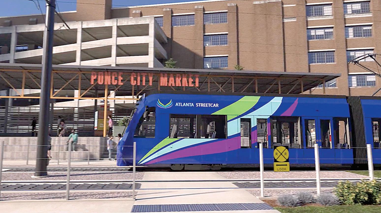 A rendering of the Atlanta Streetcar at Ponce City Market. (Courtesy ABI)