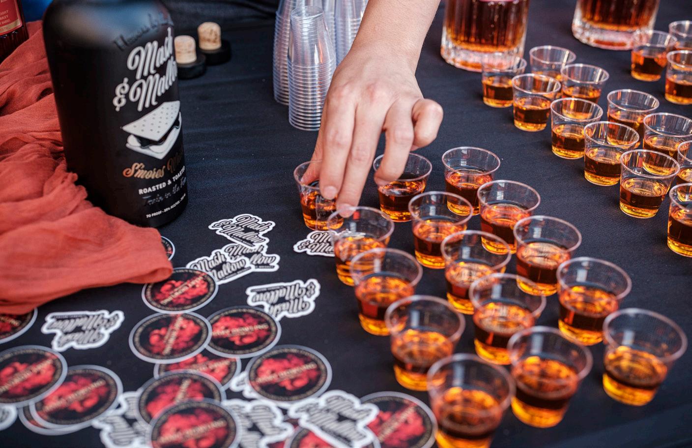 Attendees move through tastings, with live music from Bogey and the Viceroy on the outdoor stage, a DJ inside, and a guest appearance from the Seed and Feed Marching Abominables.