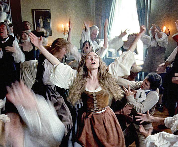 Through the camera and through Celia Rowlson-Hall’s choreography, Fastvold so clearly expresses this form of worship’s ties to sexuality. In one scene, Ann raised high and sensuously draped across her writhing revelers, she evokes the sinful images of Adam and Eve that came to her in her vision.
