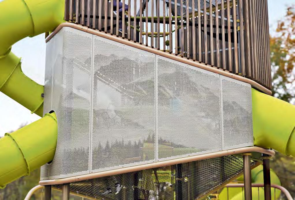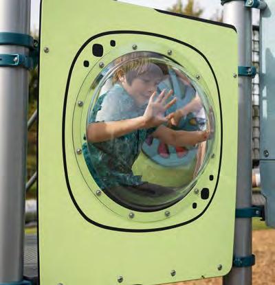 The eye-catching perforated panels on Volo Aire™ are a perfect place to add personalization to your playground. Incorporate words, patterns or even images for a one-of-a-kind play experience.