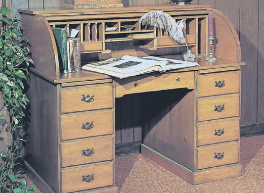 FIRST POPULAR IN the late 18th century, roll-top desks embody a classic marriage of design and functionality. And although more than 200 years have passed, this timeless design is as common as ever, both at home and in the workplace. This handsome do-it-yourself version has all the features that keep rolltops popular. The pedestal base holds seven big drawers (including two that are deep enough for file folders) and two pull-out drawing boards. On top, 16 handy pigeonholes are perfect for sorting and filing, and two small drawers hold postage, pens and other supplies. Best of all, at the end of the day simply pull down the tambour cover to conceal and secure work-in-progress.
