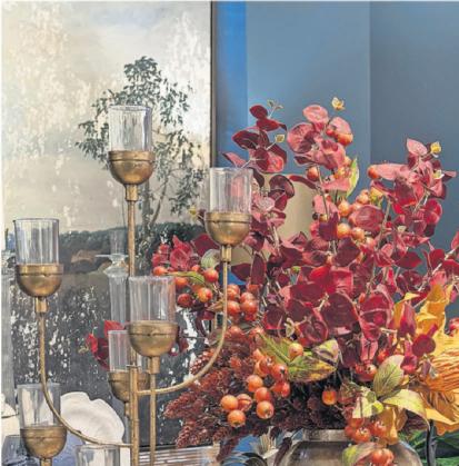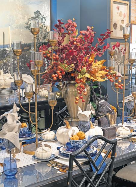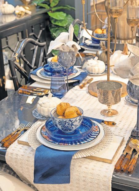 An autumnal tabletop highlights the bright colors of the foliage of the season and pairs with classic blue and white for a timeless look. (HANDOUT/TNS)