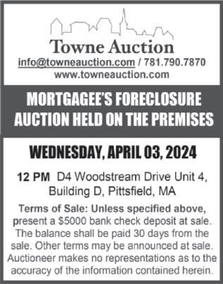 12:00 PM - CHESHIRE, MA 57 CHURCH STREETDEPOSIT $5,000