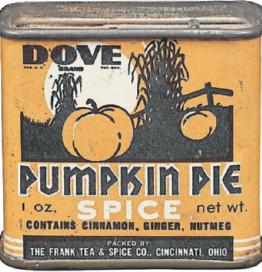 For the past few years, the arrival of fall has meant two things: pumpkin spice in everything and jokes about pumpkin spice in everything. The flavor may have exploded in popularity during the last decade or so, but it’s been around much longer than that. This tin by the Frank Tea and Spice Co., which sold for $153 at Morford’s Antique Advertising Auctions (AntiqueAdvertising. com), is proof.