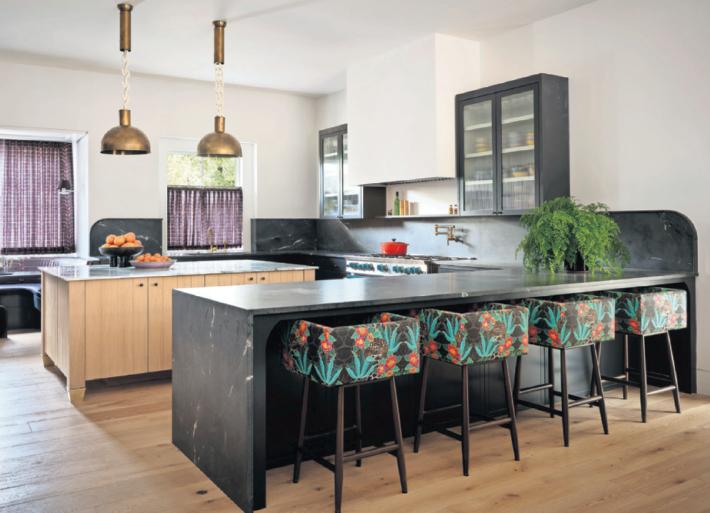 This approach is a great option for homeowners who like the look of marble counters but worry about etching and stains, Jones said. In a home in Park City, Utah, for instance, the firm installed solid white quartz counters that are nearly indestructible, but used more finicky Calacatta Arabescato marble with dramatic swirls of gray for the