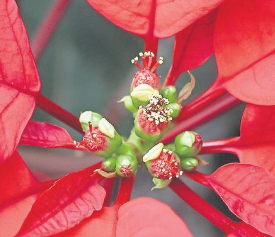Let’s share some botanical lore of this plant by setting your holiday poinsettia on a table in good light for a close look at its flowers.