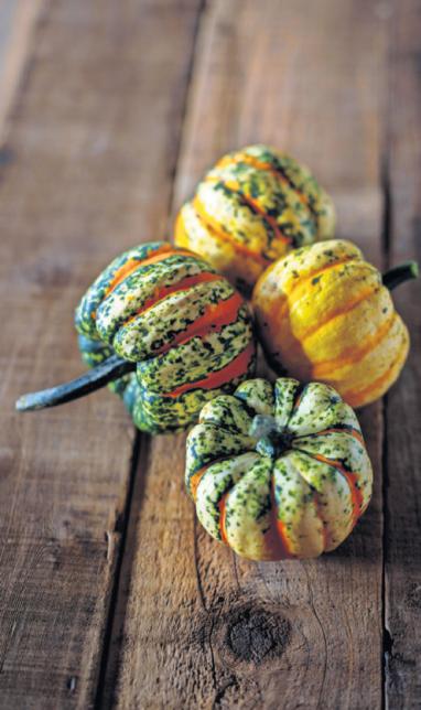 ing squash unique, well-adapted and easy to grow. The plants produce 1-to-2-pound fruits with bright orange-, green- and cream-ridged vertical stripes that shift color as they mature. (Bred by Sakata America)