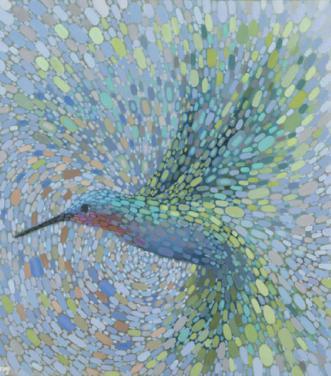 “It’s all about art or an object where color is the main motivation behind the piece. Kristen Pobatschnig’s Hummingbird in Flight VI, which we used as the cover of our latest Paradise City Guide, epitomizes our theme. It is painted in a pointillism technique that involves placing small dots of color in close proximity to each other on a canvas to create a larger image, in this case a hum-