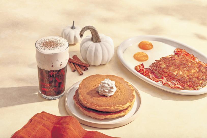 • No surprise here — IHOP’s “Pancake of the Month” flavor is pumpkin spice. The brand is offering its monthly griddle cake special in the form of a Maple Pumpkin Cheesecake Stack, a presentation that features four pumpkin spice pancakes topped with a maple glaze, a layer of cheesecake mousse, and whipped topping.