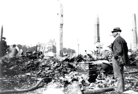 Mayor J.E.T. Bowden surveys the city in the aftermath of the May 3, 1901 fire.