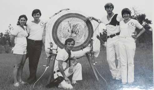 UNF Archery Team, circa 1972, training for Olympic trials in California: Cookie, Claude, Gene, William, and Donna