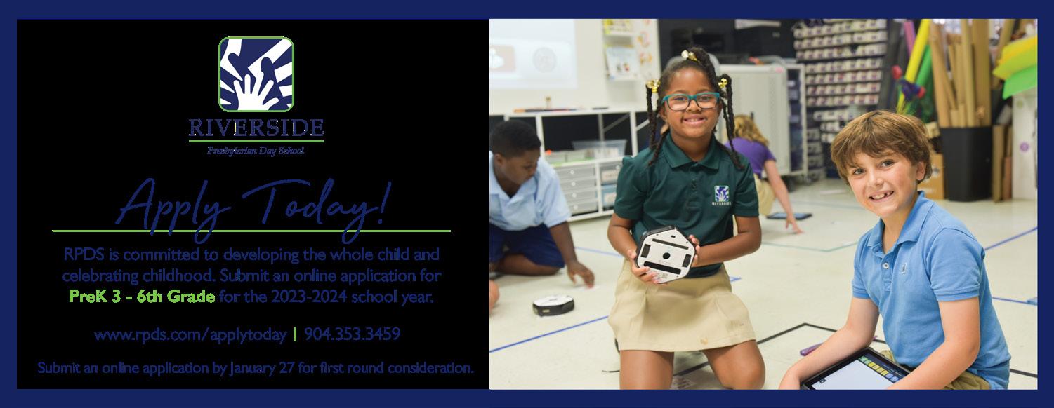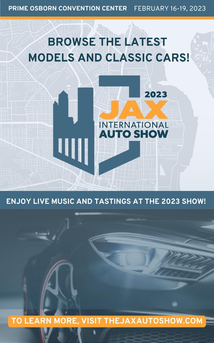 CONTINUED ON PAGE 2 IN HOMES BY FEBRUARY 5, 2023 PRSRT STD US POSTAGE PAID STUART, FL PERMIT N O .300 PONTE VEDRA BEACH AVONDALE TOWN CENTER . FERNANDINA ST. AUGUSTINE theamaramedspa.com *NEW PATIENTS ONLY AMARA Brand Ambassador: Rachael Todd © 2022 AMARA MEDSPA SAVE $75 * ON FILLER SAVE $ 50 * BOTOX . DYSPORT Amara_Residents_7.75x3.25.indd 3 12/21/22 10:21 AM AVAILABLE NOW! JACKSONVILLE’S GUIDE TO PHILANTHROPY — THE EVENTS, PEOPLE, COMPANIES AND PLACES THAT DEFINE OUR CHARITABLE CITY. VISIT CIRCLESCHARITYREGISTER.COM