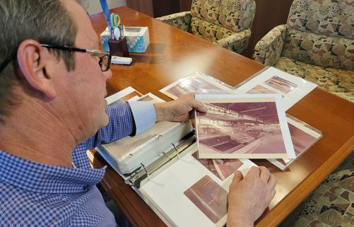 Seated at the conference table at The Resident’s office, Borum pulled photos from the binder in their protective plastic sleeves showing the old Ford Motor Plant as it was in the 1970s, when his family was there.