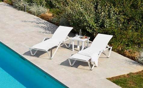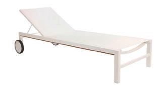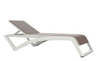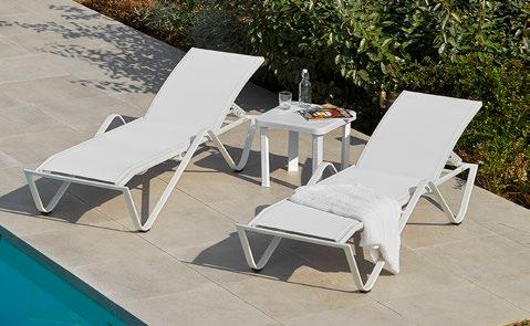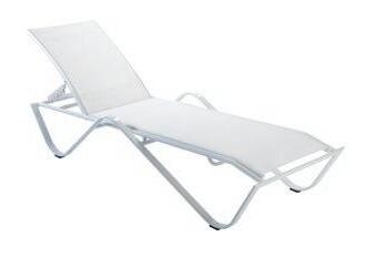 Chaise longue empilable en aluminium peint par pulvérisation couleur blanc avec textilène blanc. 5 positions de dossier.