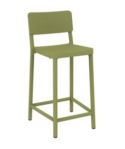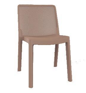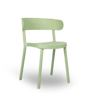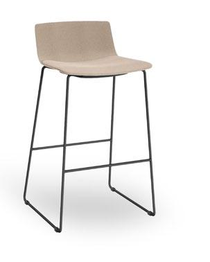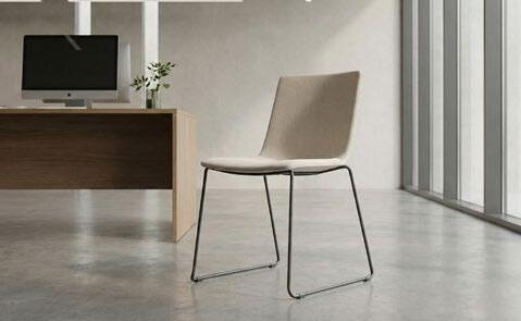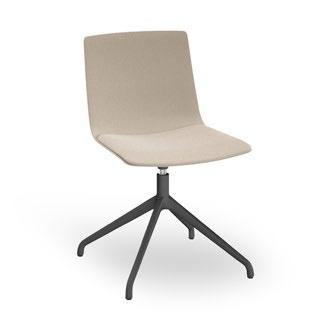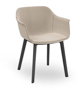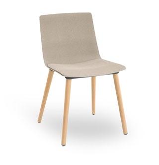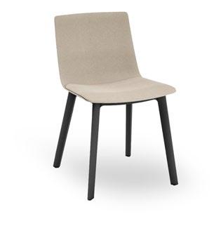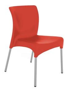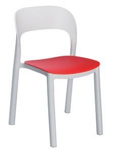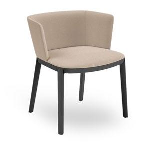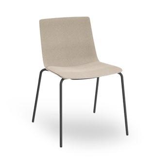 Silla apilable de aluminio lacado y espuma inyectada tapizada. Disponible en tela estándar y bajo pedido en CRIB-5.