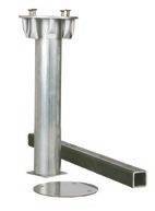 Base of galvanised steel, that can be fitted into the ground, and with an AISI 316 fixing plate and an epoxy painted aluminium lid in white. Suitable for ø 78 mm poles.
