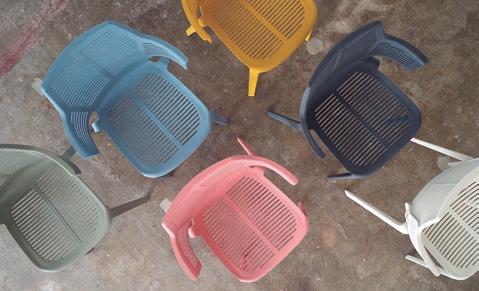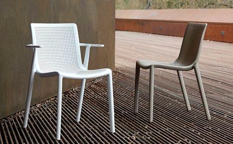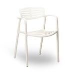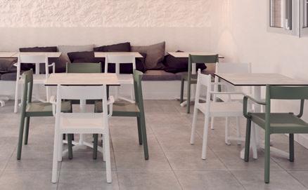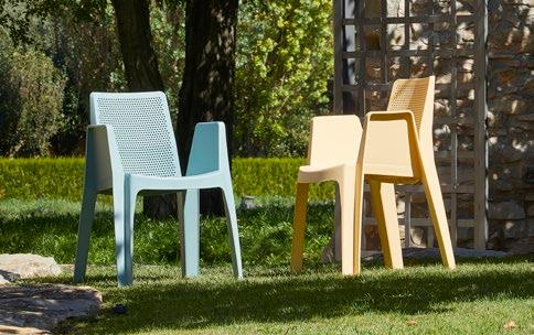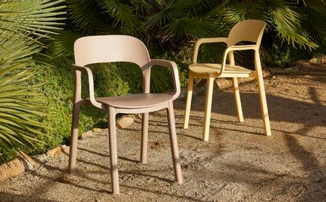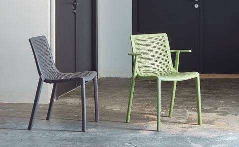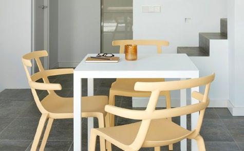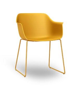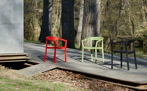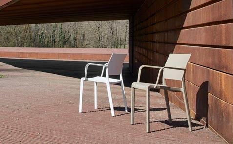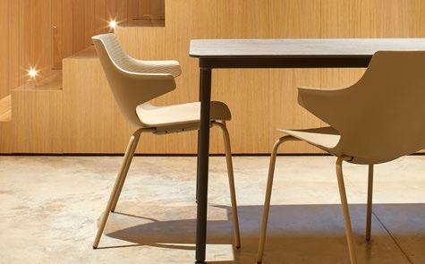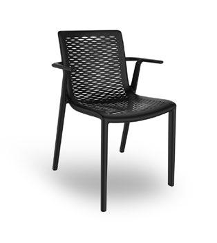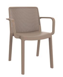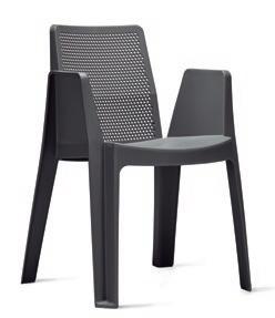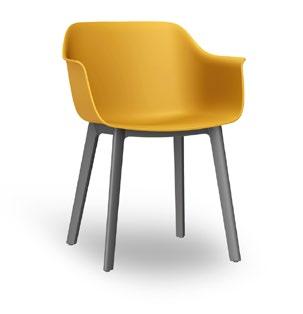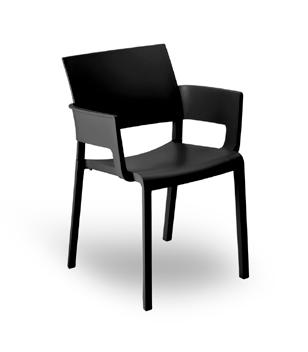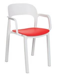 Silla con brazos para uso interior. Carcasa inyectada en PP y fibra de vidrio. Diferentes formatos de pie de silla.