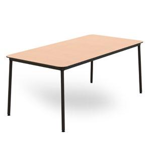Folding table with powder-coated steel frame and high-density polyethylene top. One-piece sealed top. Net weight 14 kg. With ergonomic crossbeams and table joining system.