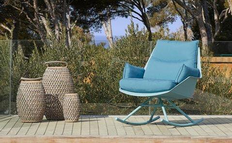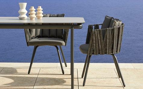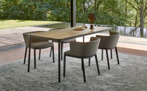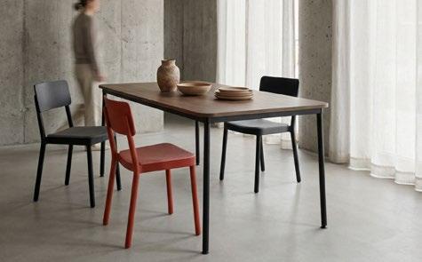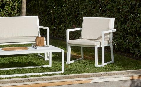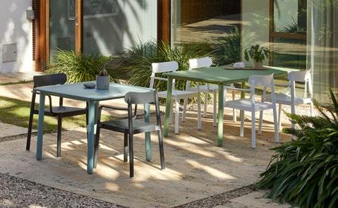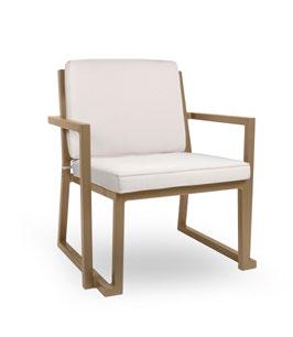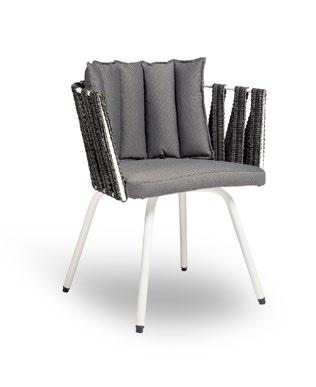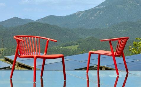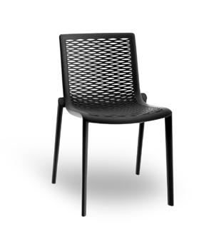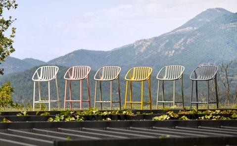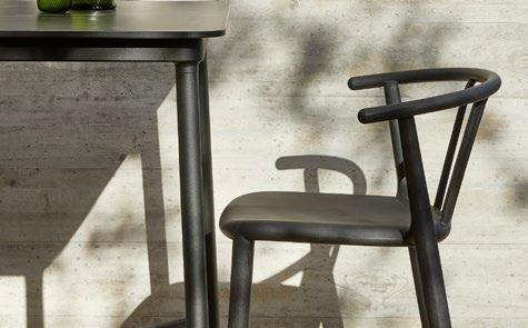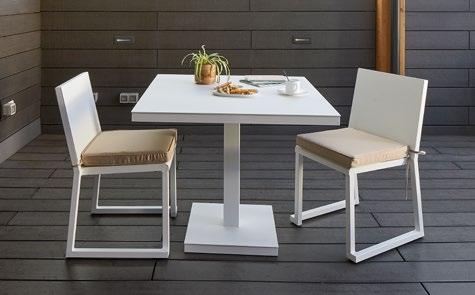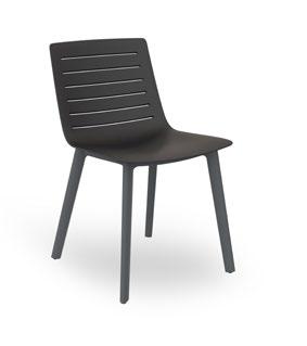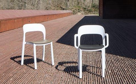 Stackable lacquered aluminium chair with injected upholstered foam. Available in standard fabric and CRIB-5 fabric (upon request).