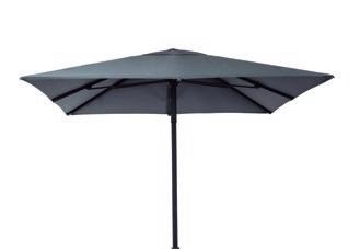 Square parasol 3 x 3 m, swith effortless, cordless opening mechanism. Includes auto-lock. One-piece ø60mm aluminium pole. Solution-dyed polyester fabric.