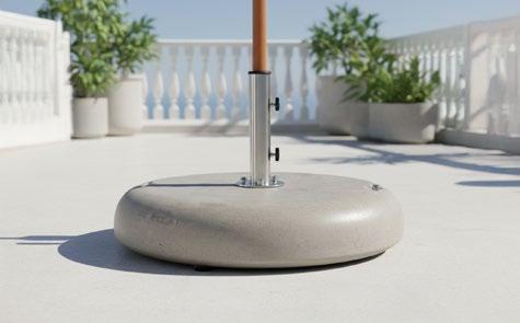 Socle de parasol en ciment de 90 kg avec 4 roulettes de 6 cm. Option avec tube de Ø57 et Ø70 mm. Le tube Ø57 mm convient aux mâts Ø38-51mm. Le tube Ø70 mm convient aux poteaux jusqu’à Ø61mm.