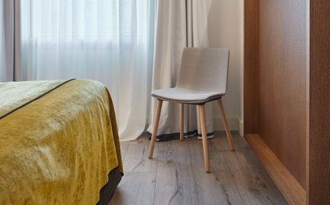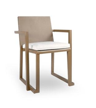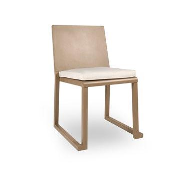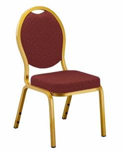 Silla apilable de aluminio lacado y espuma inyectada tapizada. Disponible en tela estándar y -bajo pedido- en CRIB5. Estructura oro.