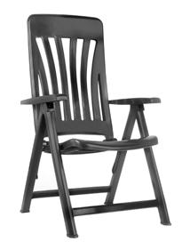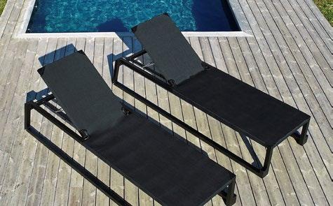 Chaise longue empilable en aluminium peint par pulvérisation couleur gris foncé. 6 positions de dossier.