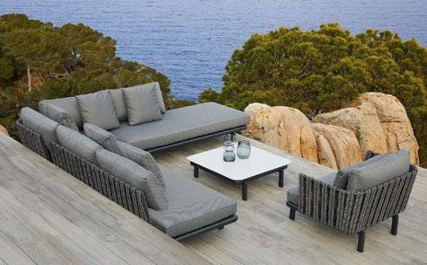 Power-coated aluminium stackable sunlounger in dark grey. Light grey textilene. Six-position reclining sunlounger.