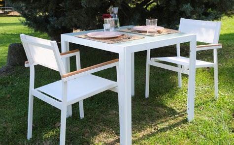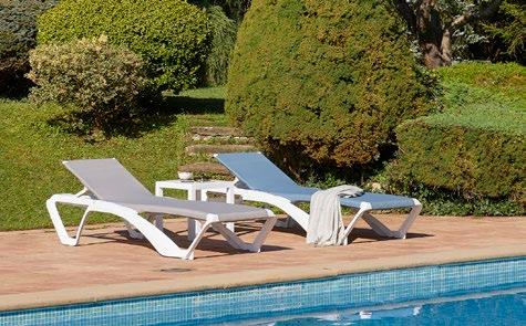 Tumbona apilable de aluminio pintado por pulverización en blanco con textilene blanco. Reclinable en 5 posiciones.