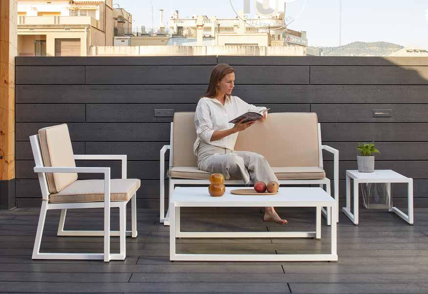 « Collection distinguée pour les espaces les plus huppées. ANTHEA ne peut pas se définir comme un complément puisque sa conception exquise transforme chacun de ses éléments en protagoniste principal du cadre. Ses ingrédients fondamentaux sont la couleur, les solutions pour les innovations textiles et la forme. Des canapés, de grands fauteuils, des chaises et un lit de piscine innovant, avec une table d’appoint et une table basse, sont des éléments parfaits pour l’intérieur et l’extérieur. »