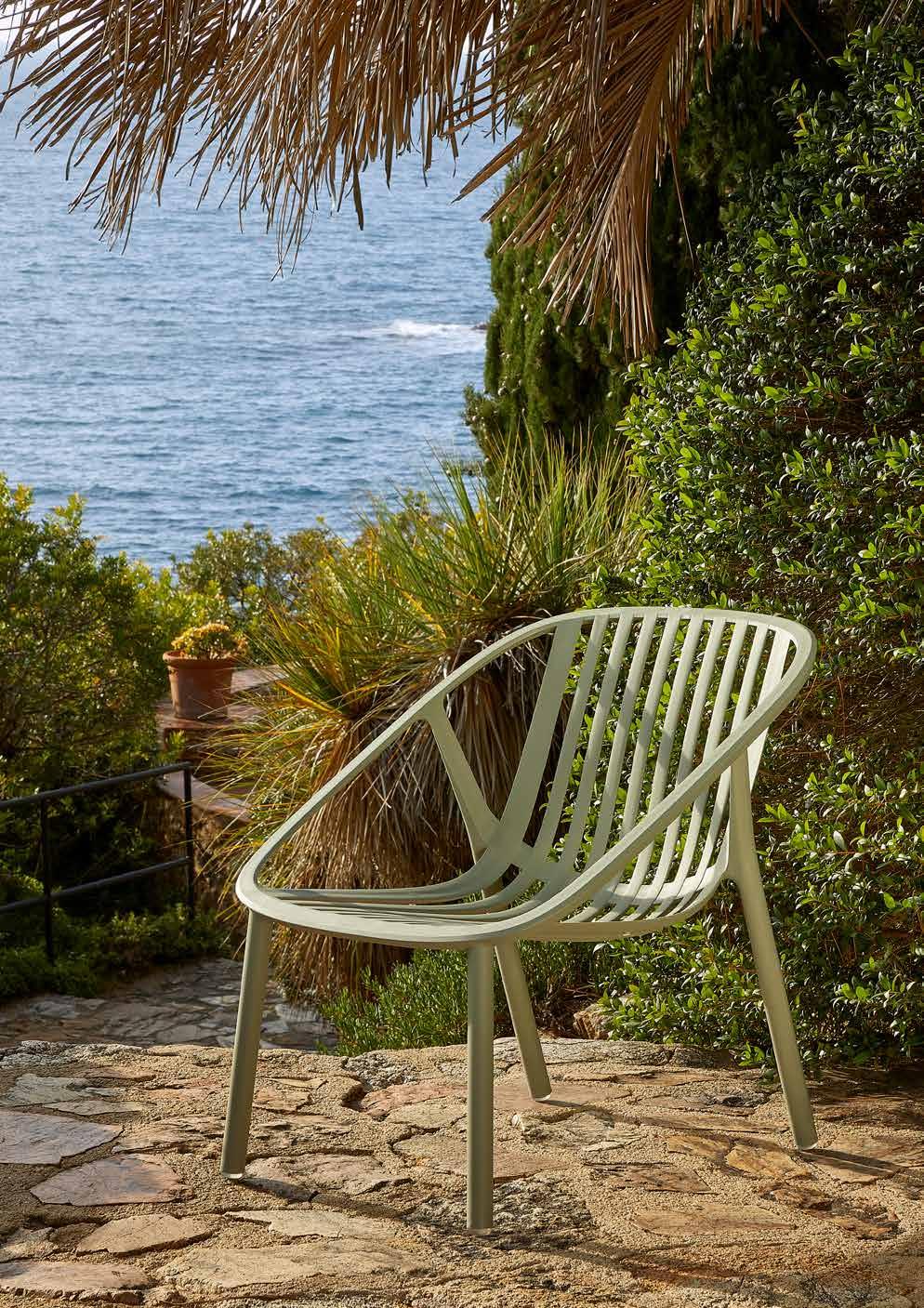 « La sinuosidad de sus formas hacen de Club una colección ideal para crear atmósferas glamurosas. Pensada tanto para exterior como para interior, su producción bajo la técnica de rotomoldeo garantiza la durabilidad. Un conjunto Club favorece momentos de conversación relajada en terrazas de restaurantes, halls de hoteles o áticos residenciales. »