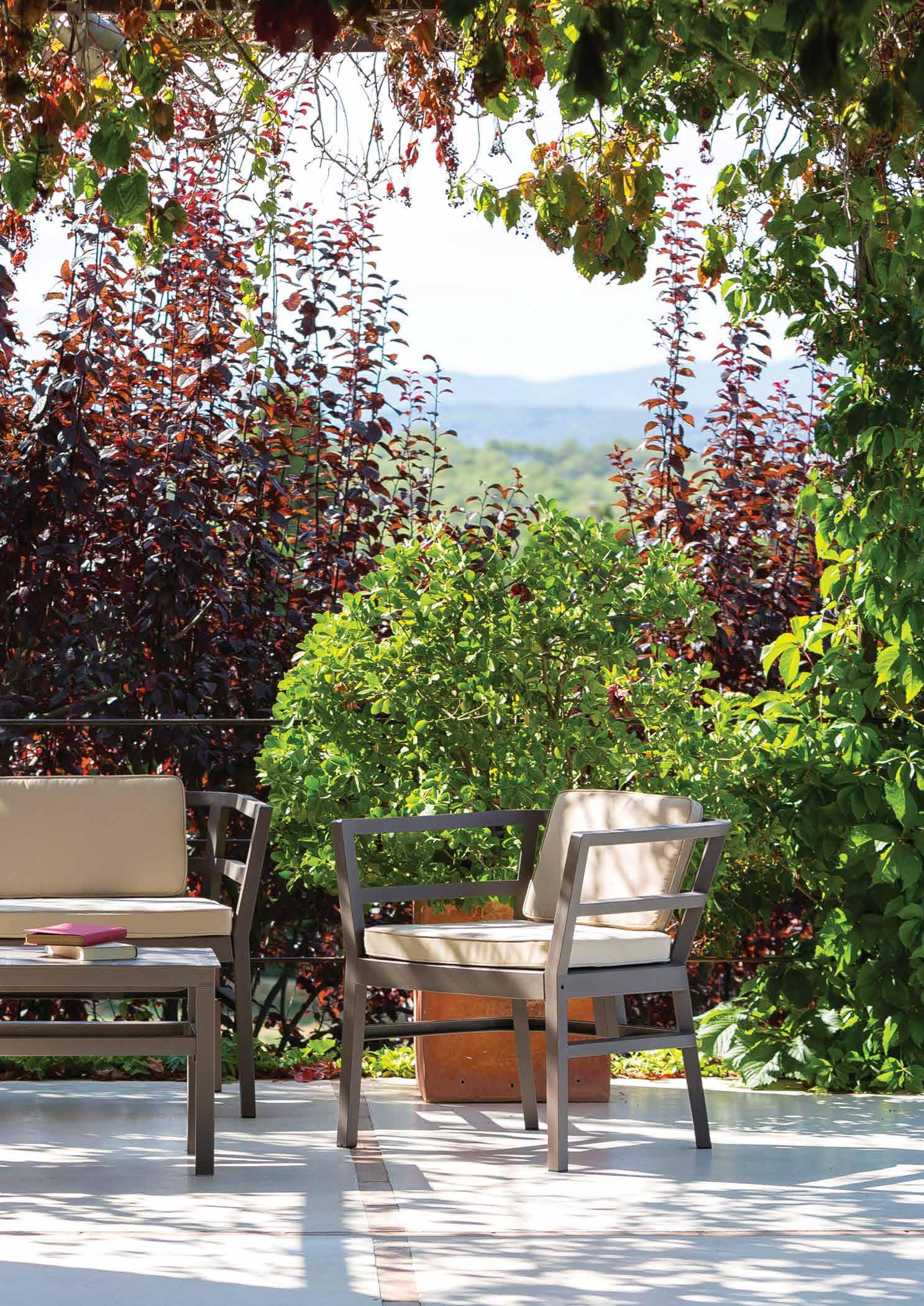Hotel Mas Solà, España. Silla woody y mesa Fall / Woody chair & Fall table Hotel Arrey Alella, España. Set Click Clack y tumbonas Milano / Set Click Clack & Milano loungers
