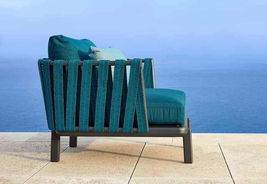 « A distinguished collection for the most select spaces, ANTHEA can’t be defined as a complement, since its exquisite design turns each of its elements into the star of the setting. Its basic ingredients are colour, solutions for textile innovations, and form. Sofas, large armchairs, chairs, and an innovative pool bed, complete with a side table and coffee table, are perfect features for both indoors and outdoors. »