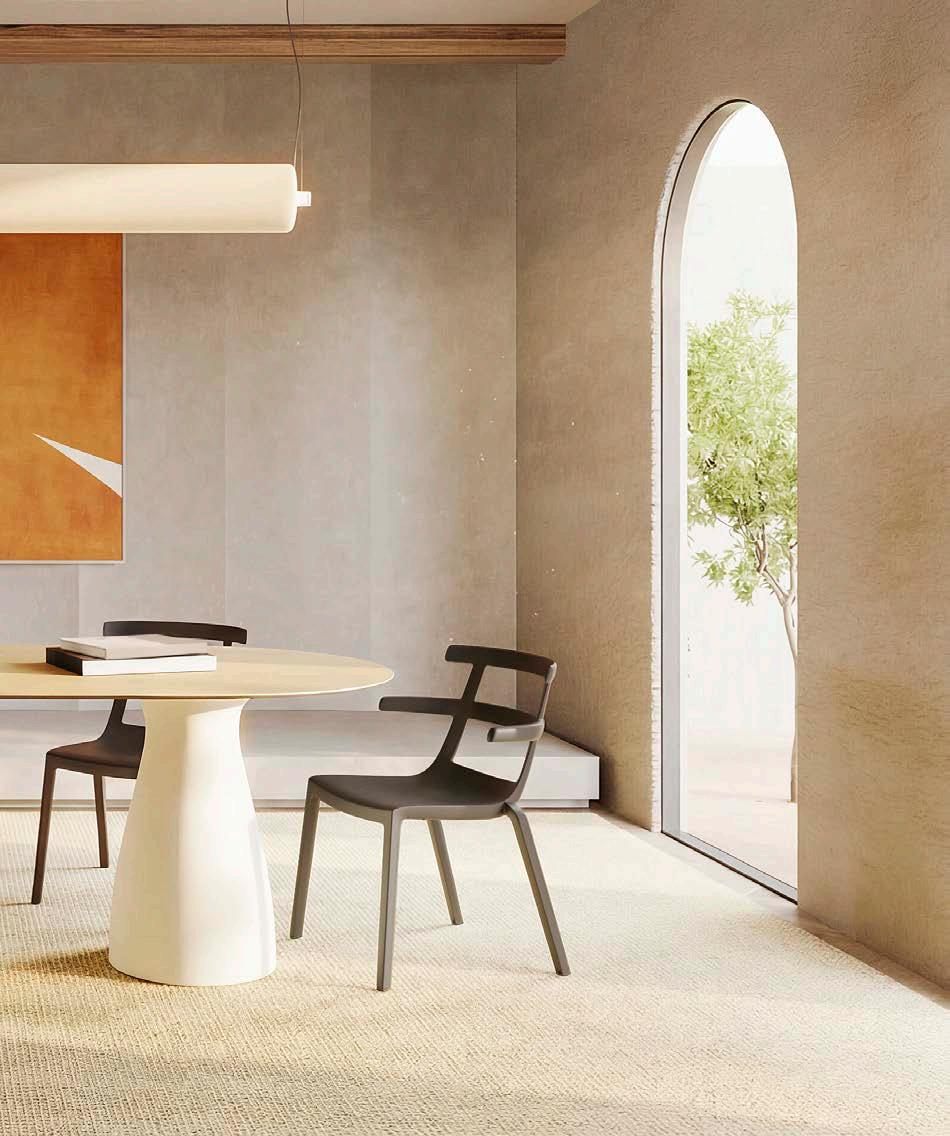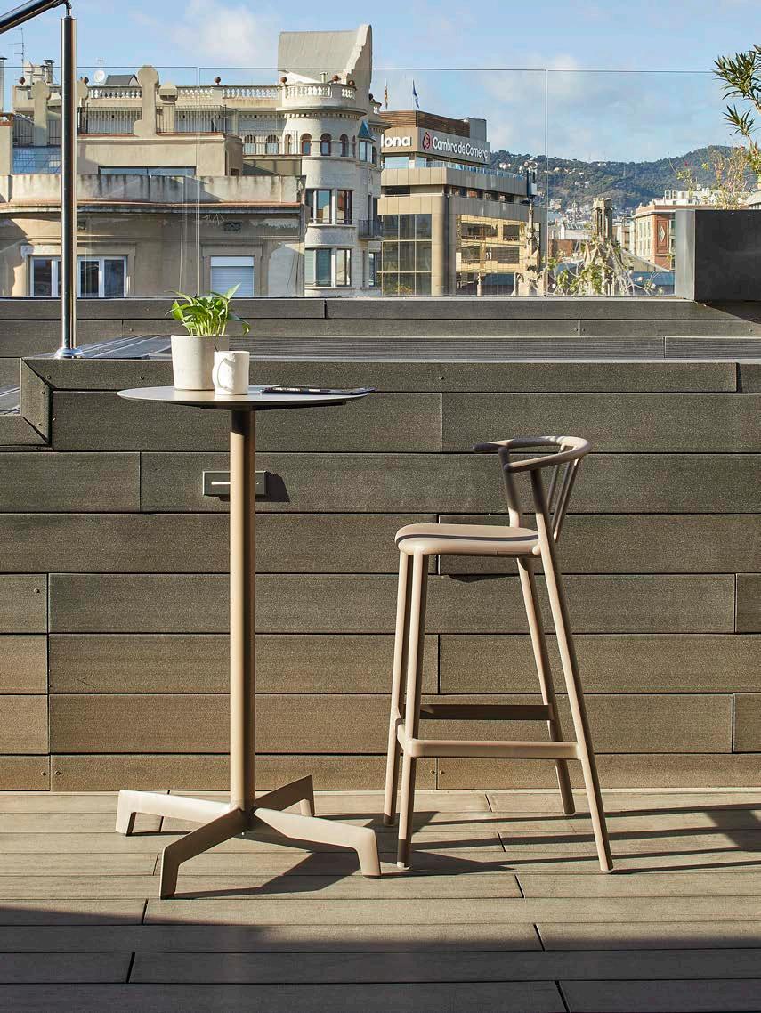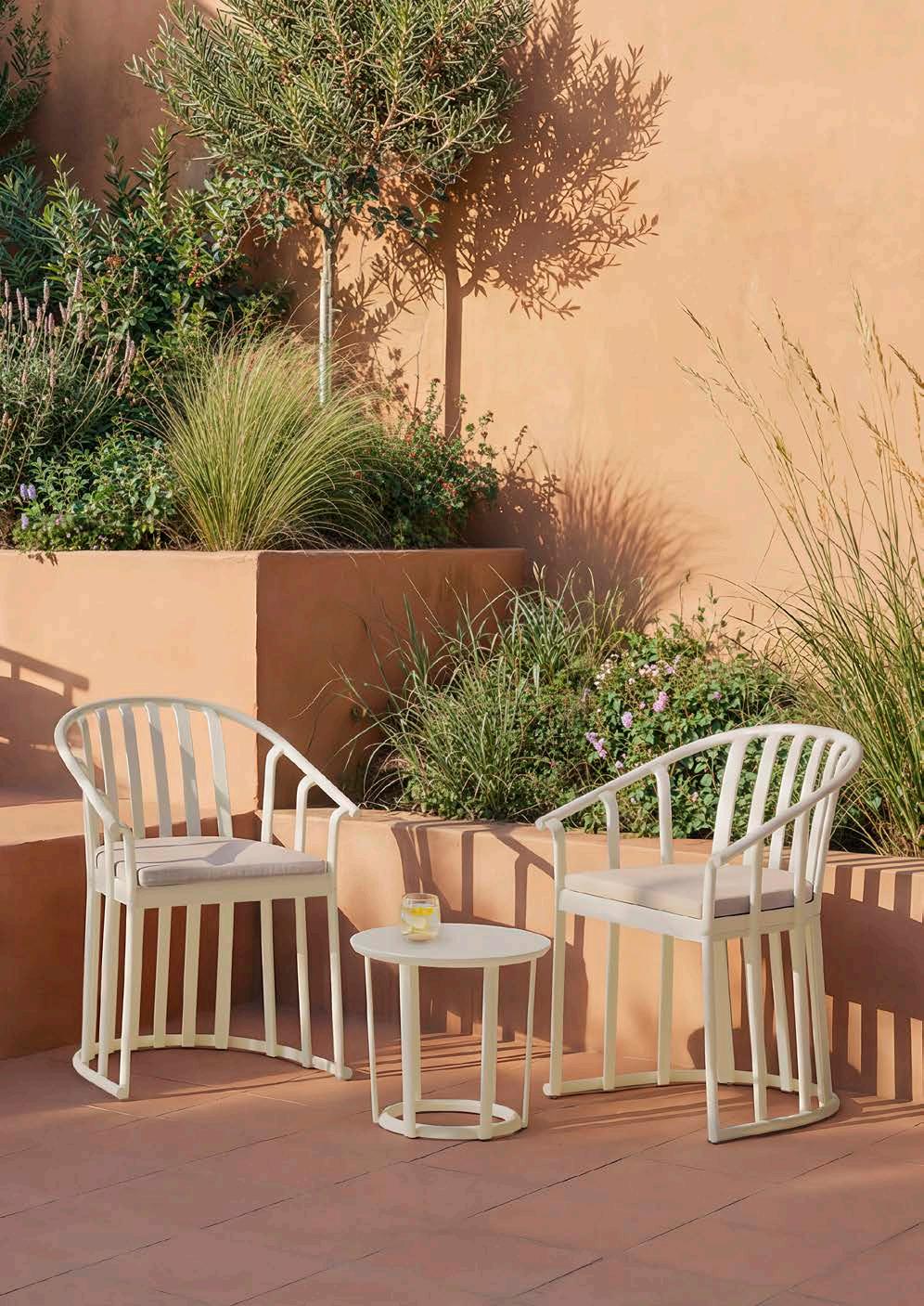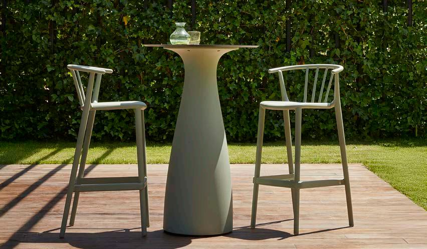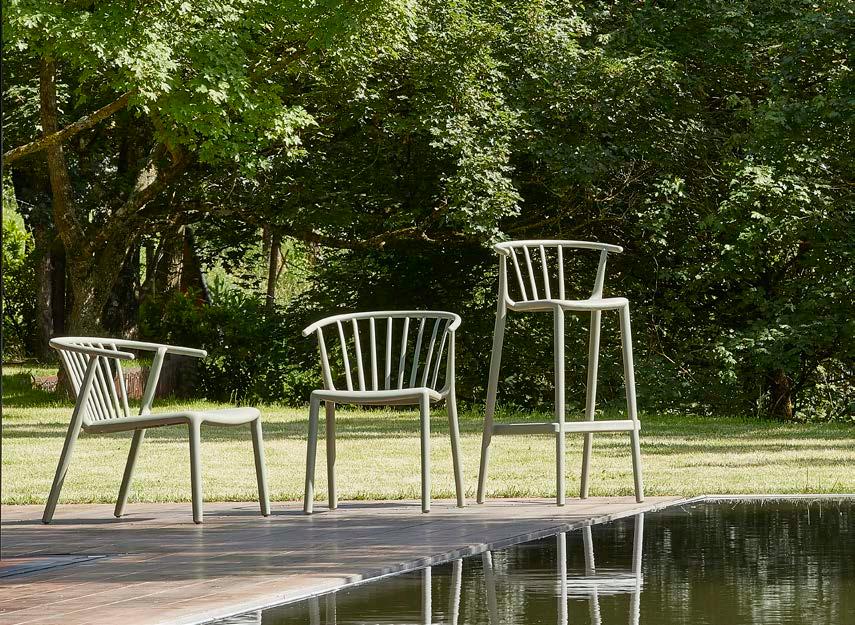 Con Brisa, los espacios exteriores se transforman en lugares para compartir, descansar o trabajar. Una colección sostenible: piezas en material reciclado, espuma biobasada y tejidos outdoor de altas prestaciones, rematados con un elegante bordón.