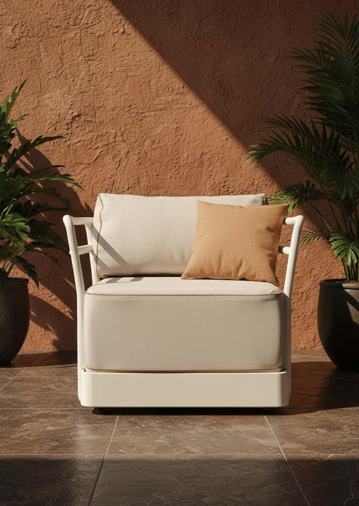 Avec Brisa, les espaces extérieurs deviennent des lieux pour partager, se détendre ou travailler. Une collection durable, réalisée en matériaux recyclés, mousse biobasée et tissus outdoor haute performance, soulignés d’un élégant passepoil.