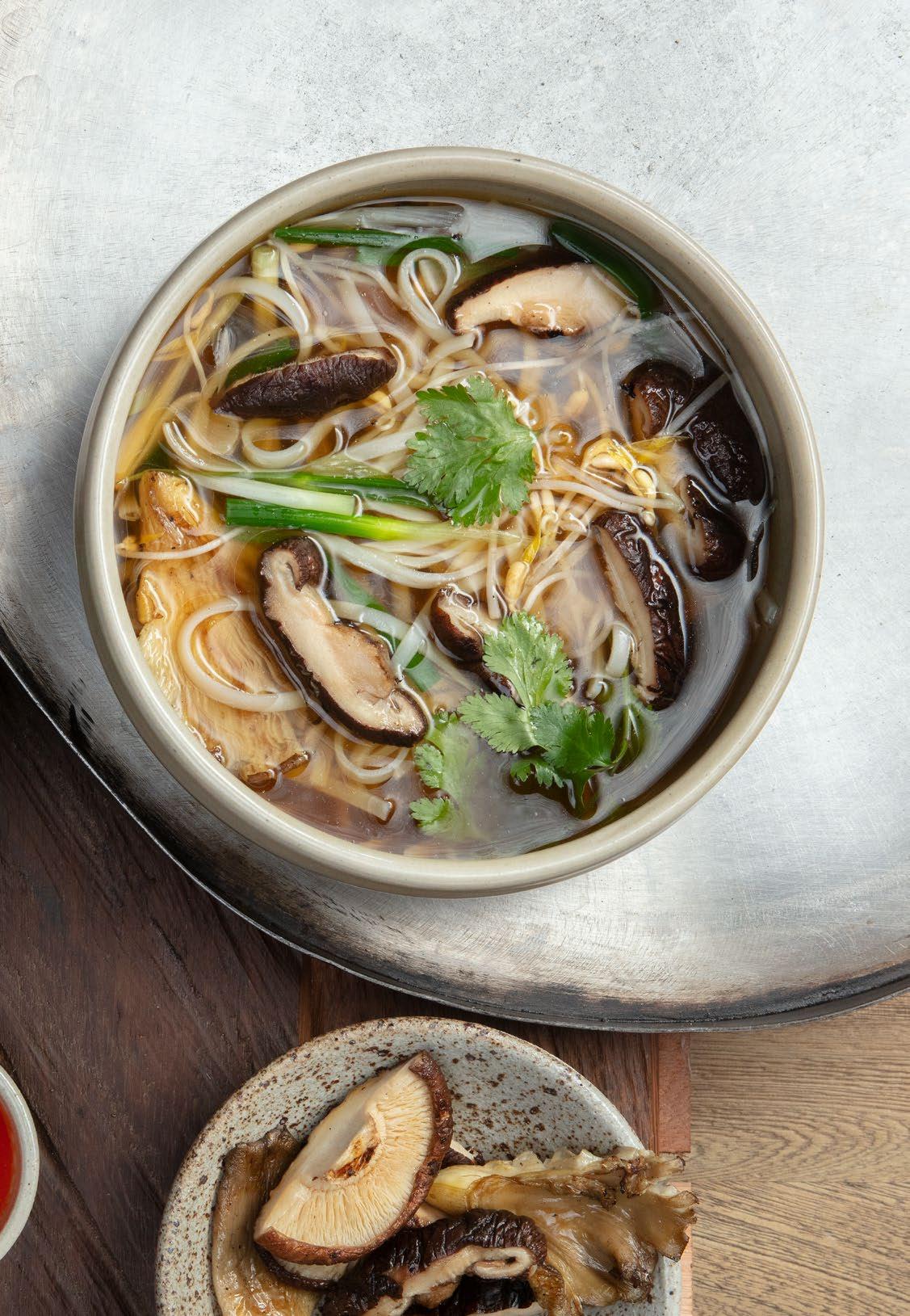 Consomé de pollo, con pasta de arroz, salsa de ostras, cebollín oriental y cilantro. Servida con salsa sriracha y limón. $34.900