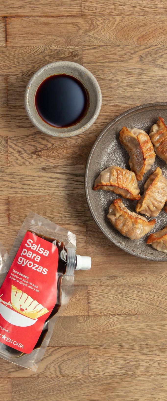 congeladas y salsa para gyozas . setas