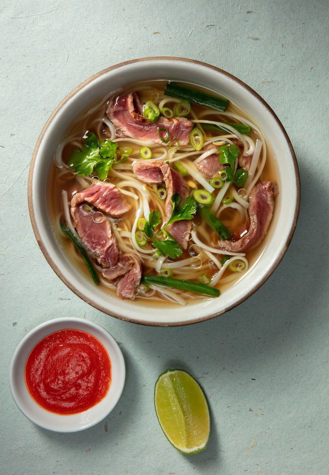 Vietnamita con cadera de res Consomé de pollo, con pasta de arroz, salsa de ostras, cebollín oriental y cilantro. Servida con salsa sriracha y limón. $40.900