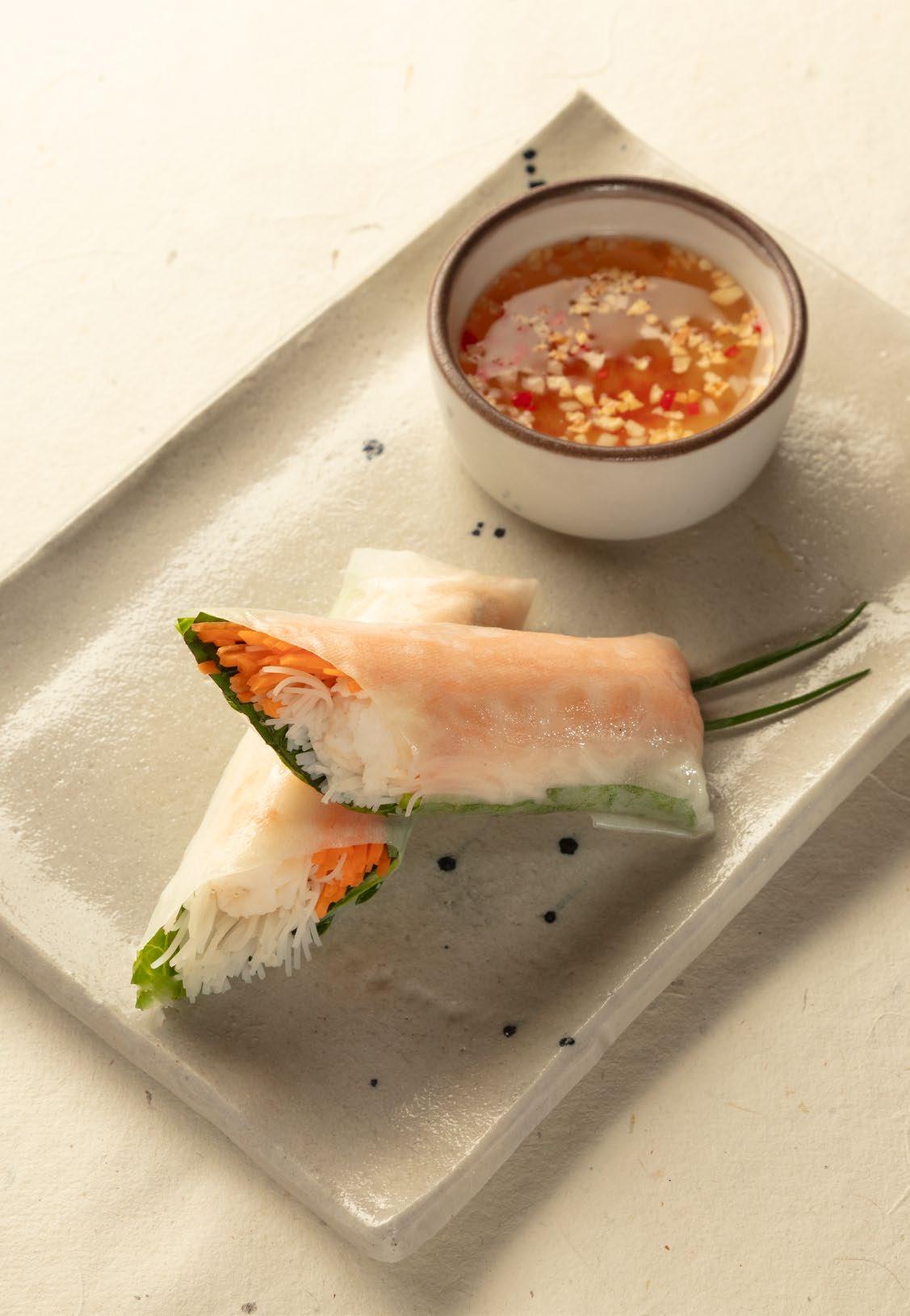 Langostino (2 unidades) Langostino con pasta vermicelli de arroz, lechuga, hierbas y zanahoria. Servidos con salsa vietnamita con nam-pla y maní. $25.900