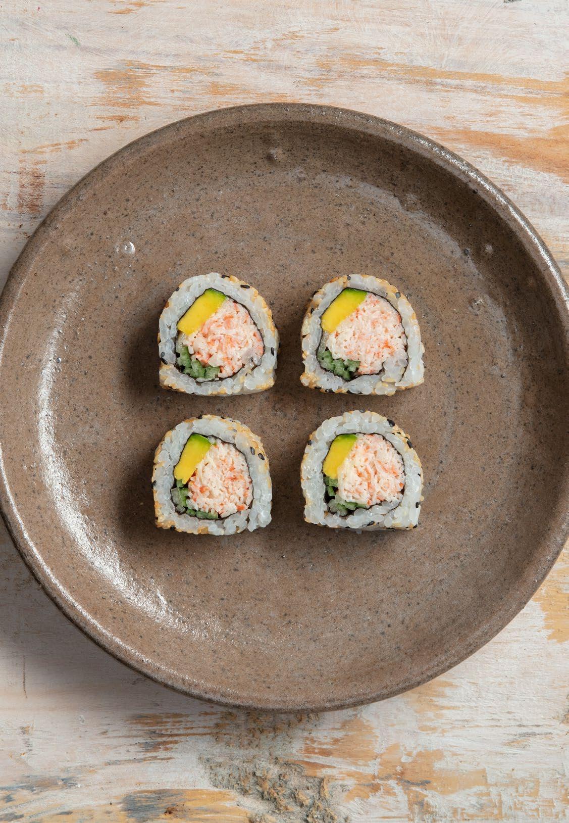 Arroz, camarón, palmito de cangrejo, mayonesa, ajonjolí, alga nori y sal marina. $15.900