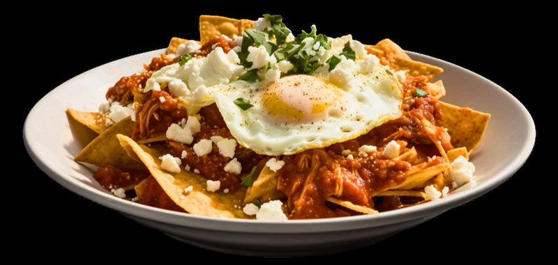 ubiertos con salsa de chorizo y chile guaque.