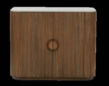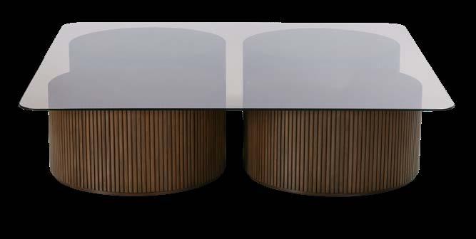 “The sultry, sculptural cocktail table balances masculine structure with feminine curves.”
