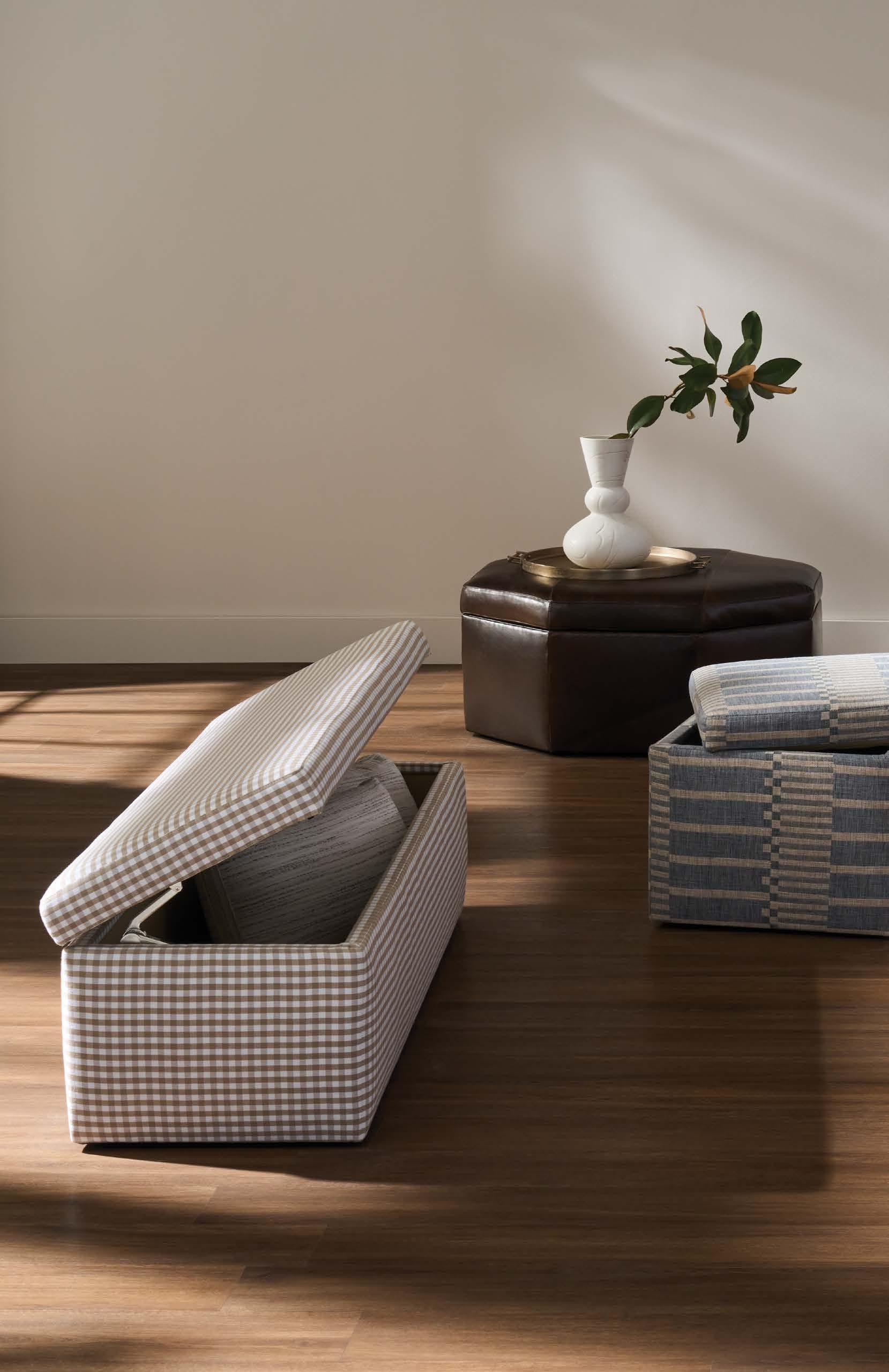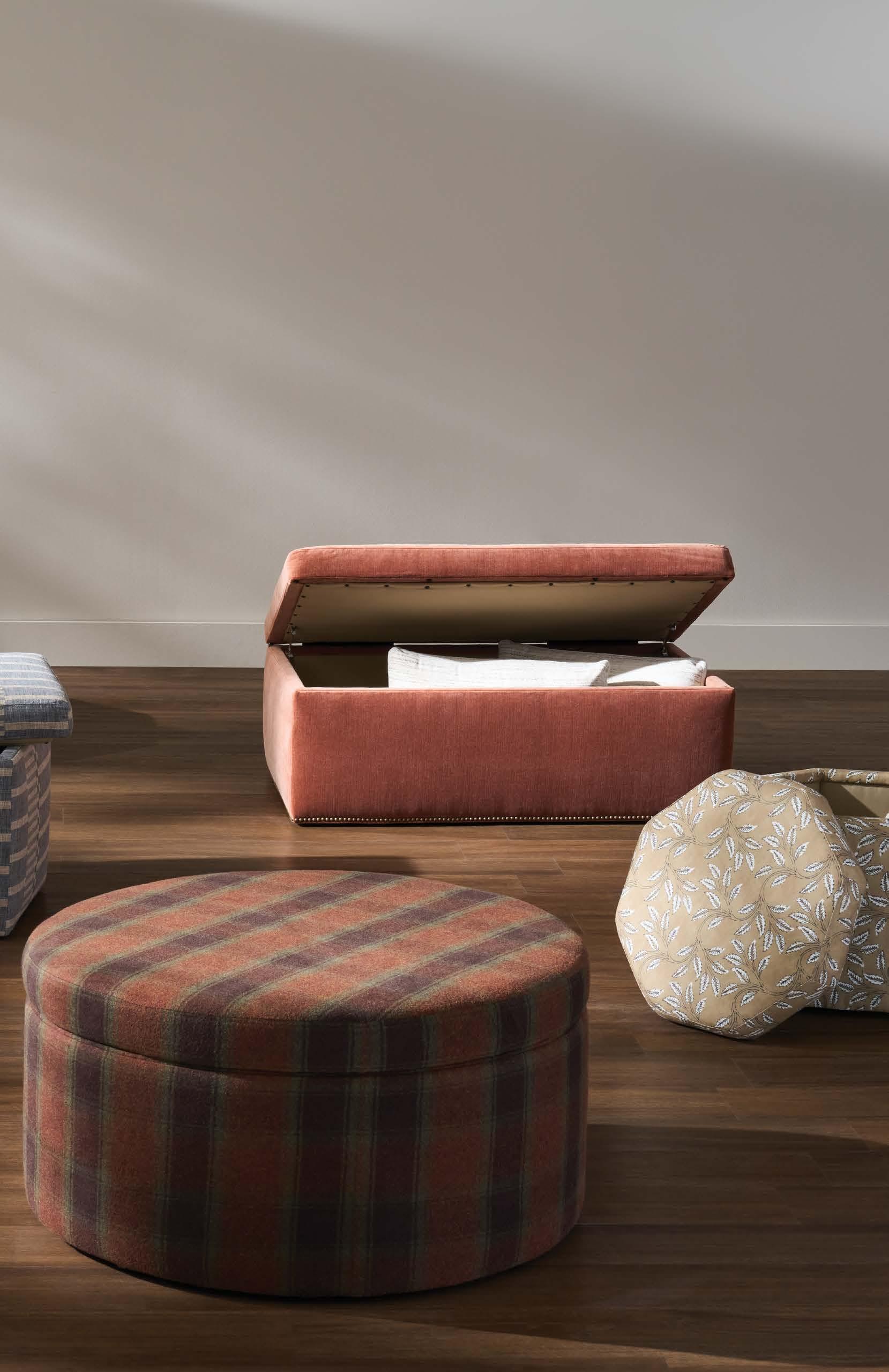 “The Othello Octagonal Storage Ottoman — I love that you can use two different fabrics for the base and the top.”