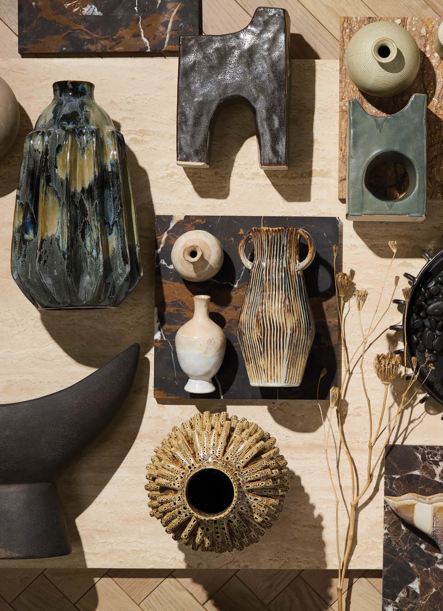 3. Claribel Vases Accent Decor 4. Brushed Ink Wallpaper in Black York Wallcoverings