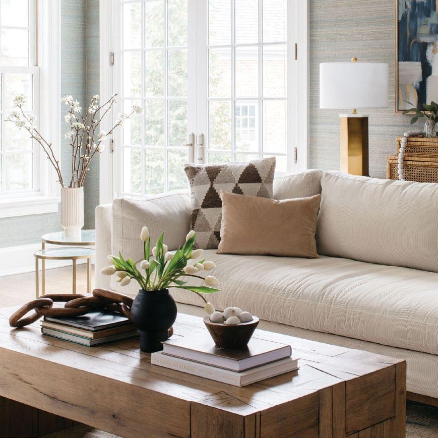 “This season we are having fun with ottomans. The Macon Ottoman layered with the Cove Table is super functional for those who want a space to prop their feet up and a place to put their cup of coffee. It's the perfect blend of form and function.”