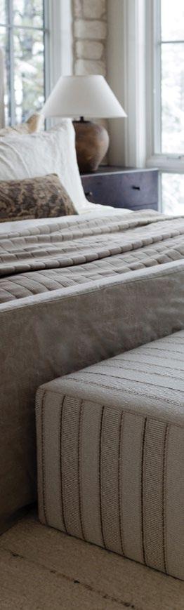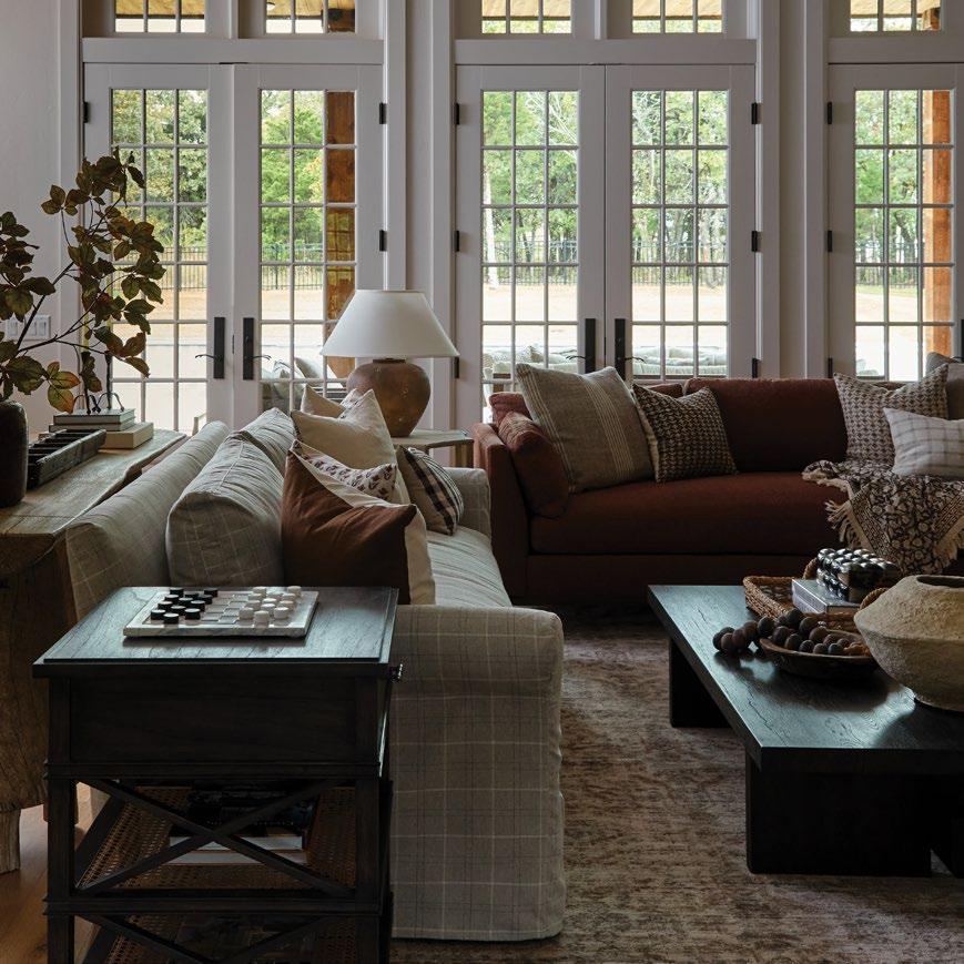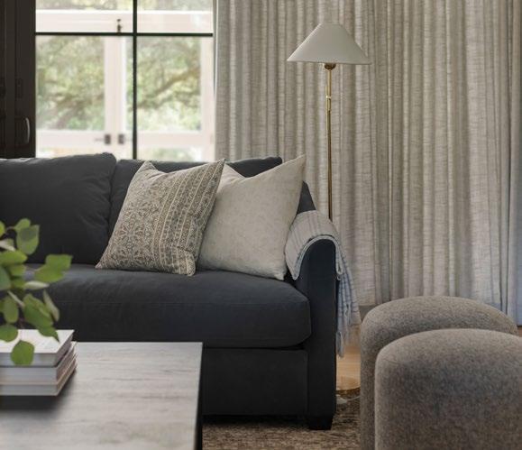 “This project is located in the foothills of California, nestled on a few acres. We wanted to blend a contemporary coziness, complemented by layered patterns and timeless, traditional structural forms. The overstuffed club chair feel of the Madeline juxtaposed with the tight pattern is perfect paired with the large-scale linen plaid on the sectional.”