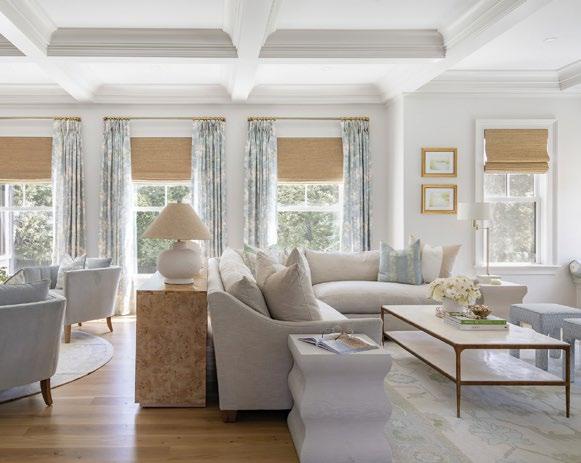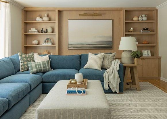“This project was designed for a family of four who loves coastal colors. While they don’t live on the coast, our goal was to create a timeless family room with a subtle nod to that palette, resulting in a room that feels fresh, layered, and classic.”