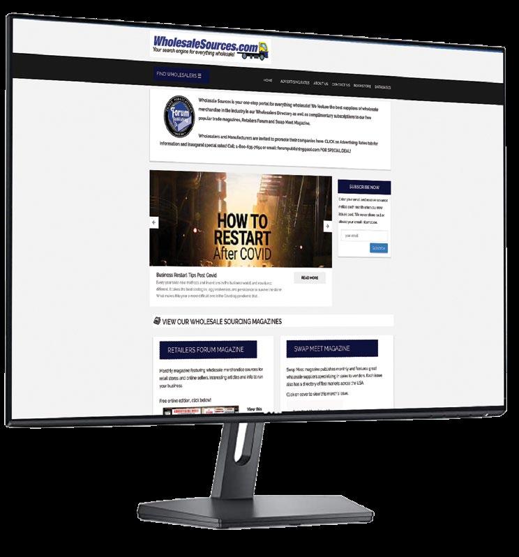 THE ULTIMATE WHOLESALE RESOURCE! WholesaleSources.com your search engine for everything wholesale! Instant Access to: • Free Monthly Trade Magazines • Articles For Your Business • Hot Products Review • USA’s Leading Wholesaler Search 107 • OCTOBER 2022 • SWAP MEET MAGAZINE... READ BY 75,000 VENDORS NATIONWIDE